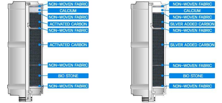 Beide Aktivkohle-Mehrschichtfilter sind vor einer Aufkeimung durch Silberbedampfung geschützt