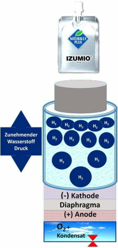 Als man aber herausfand, dass der gelöste Wasserstoff der entscheidende Faktor für die antioxidative Wirkung ist, entwickelte sich eine Industrie, die Wasserstoff mit Hochdruck in mehrlagige Wasserbeutel presste, wo sich der Gehalt mehrere Monate lang erhalten ließ. Ein solcher Beutel mit 0,2 l Wasserstoffwasser kostet aber rund 4 € und verursacht auch große Müllprobleme.